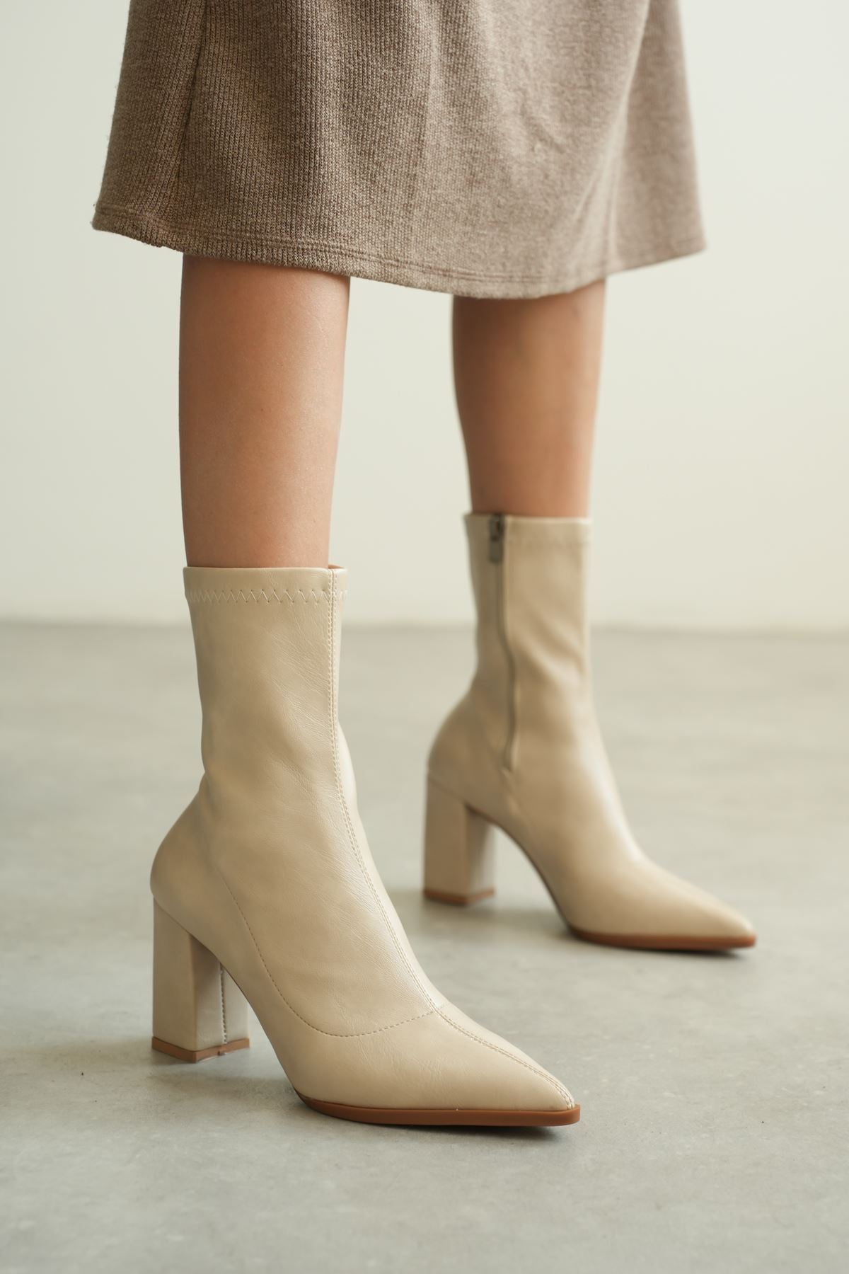Kadın Enjoy Kalın Topuklu Streç Bot - Ten Deri
