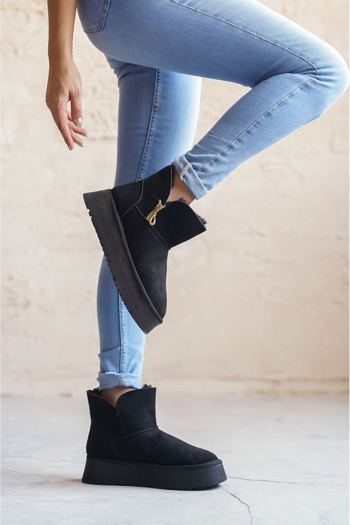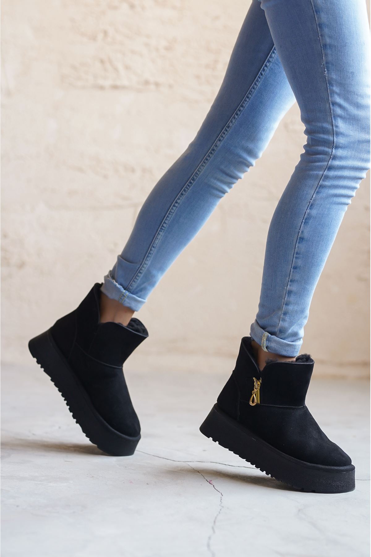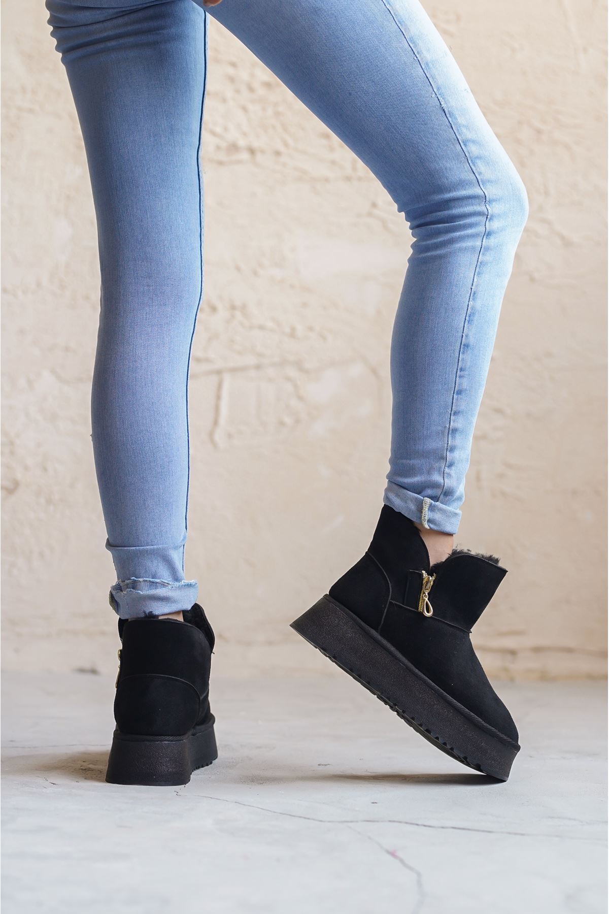Kadın Getto Kürklü Kısa Bot - Siyah
