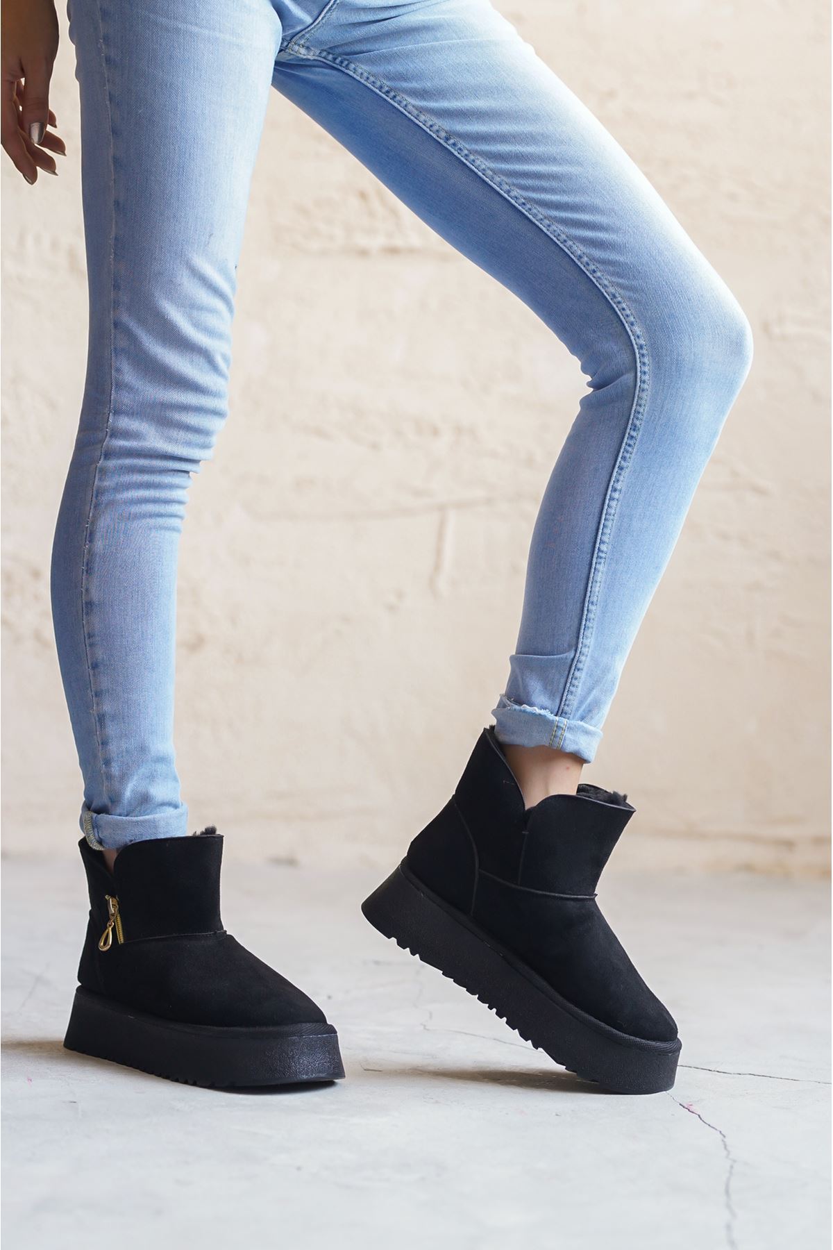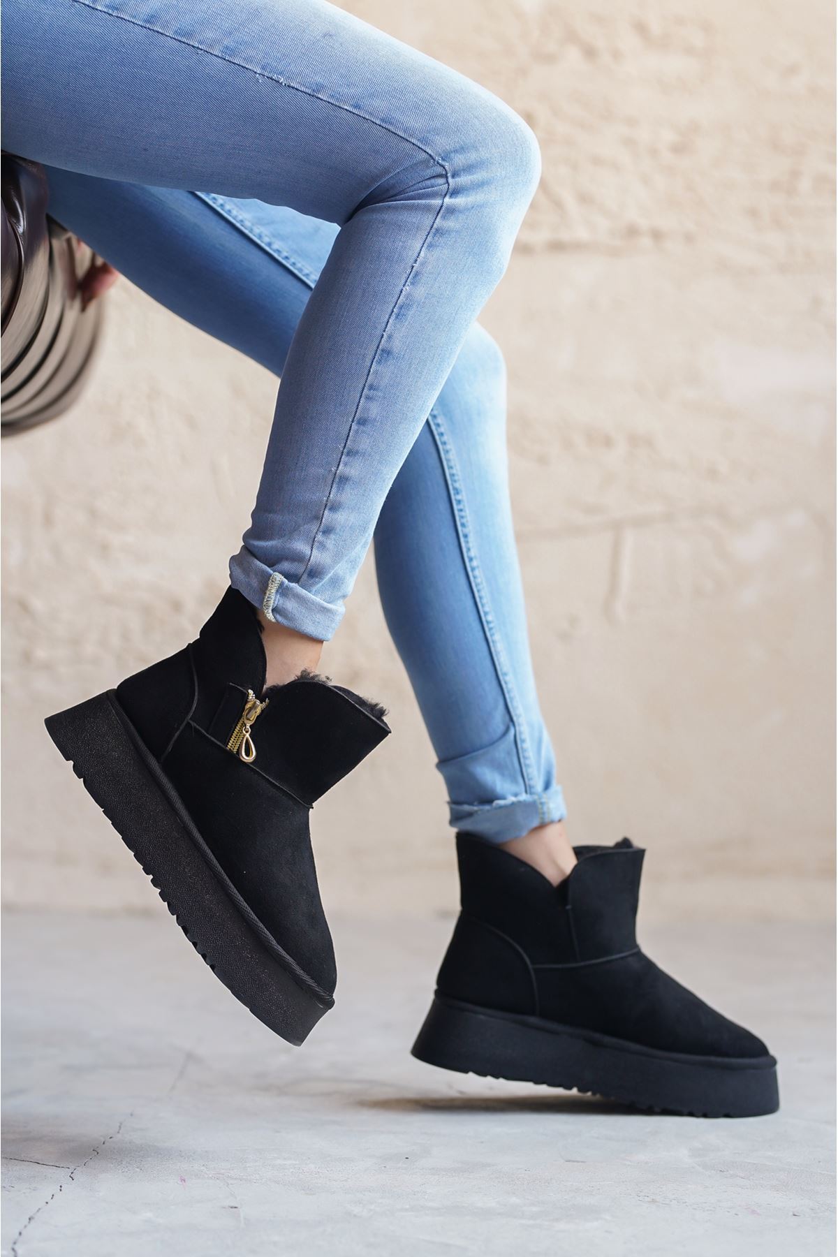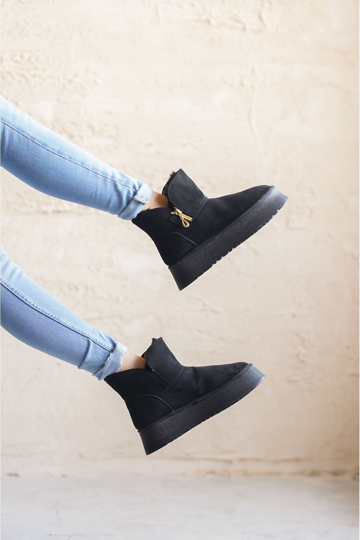 Kadın Getto Kürklü Kısa Bot - Siyah