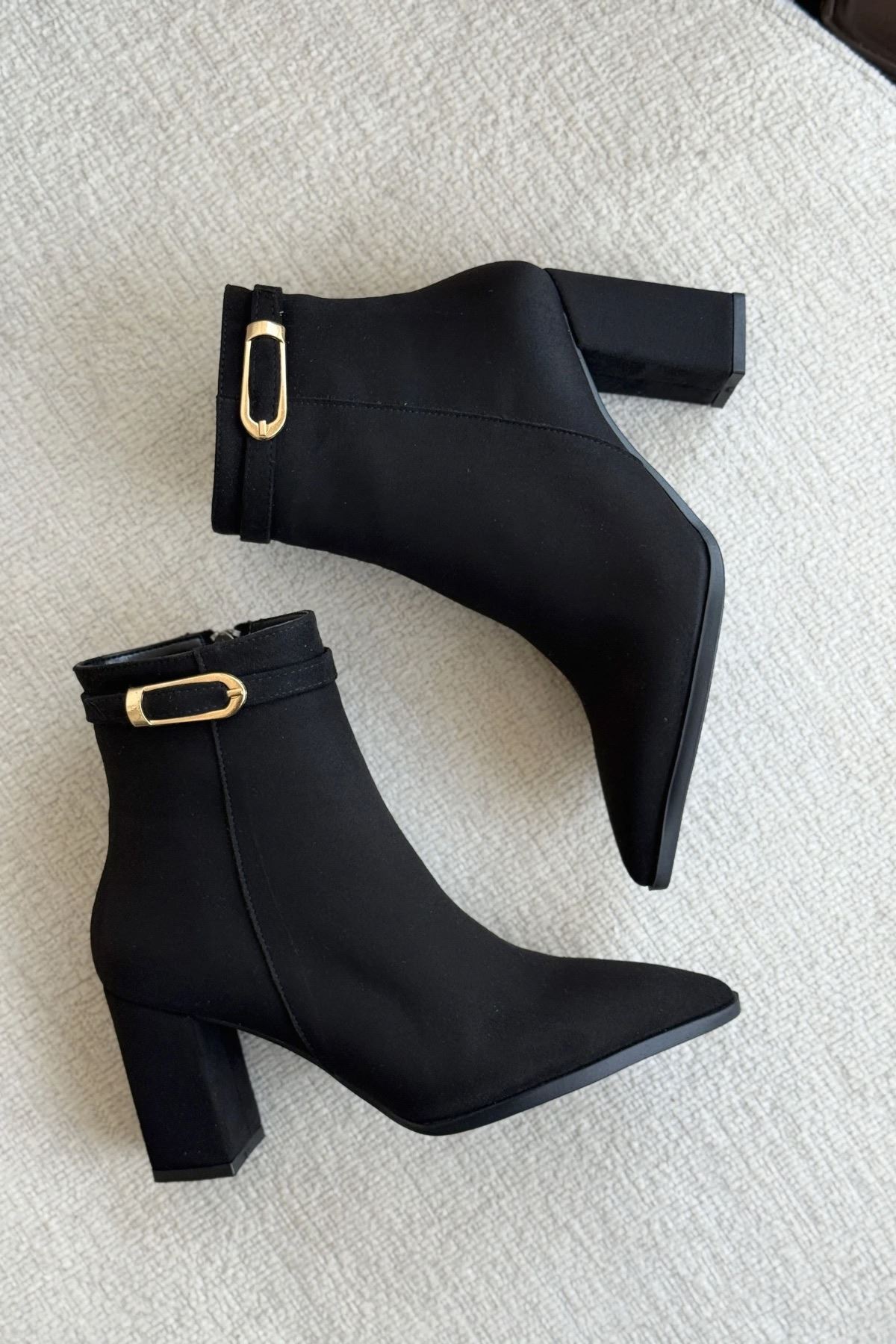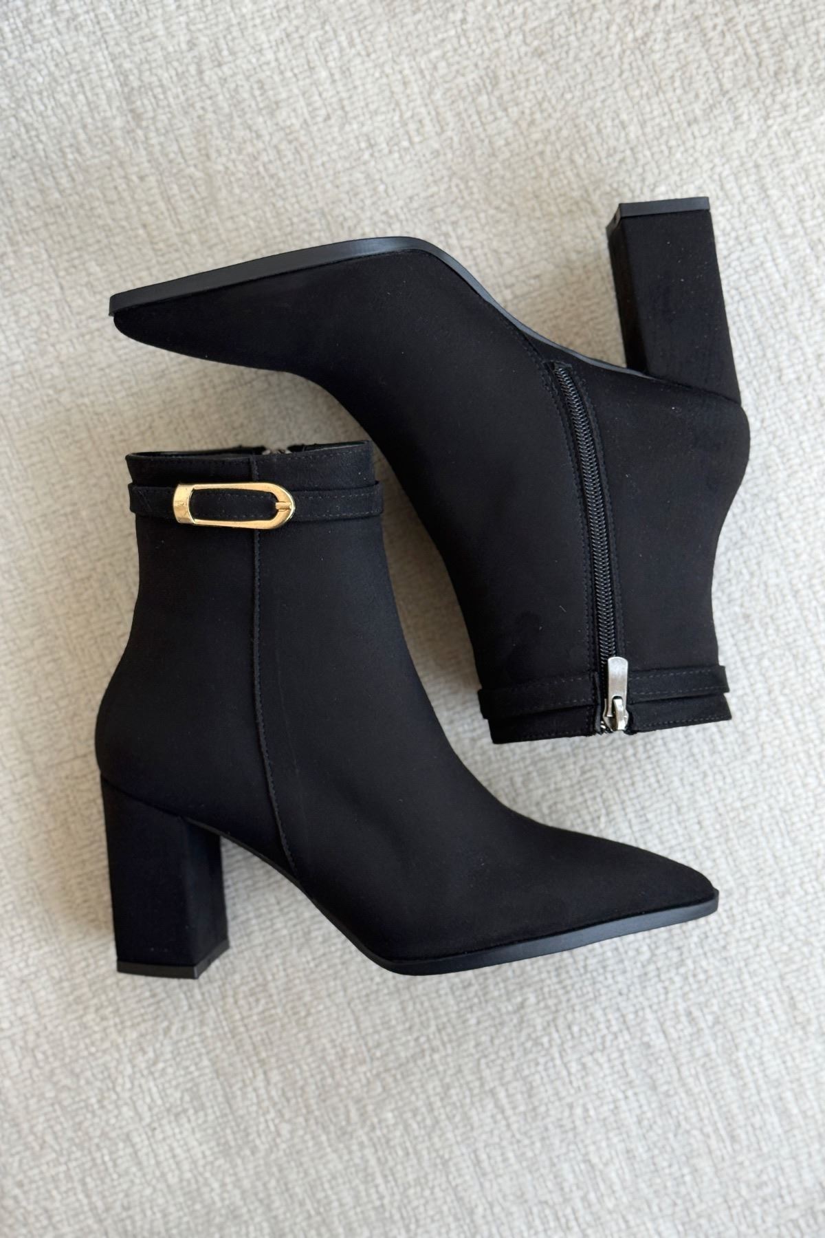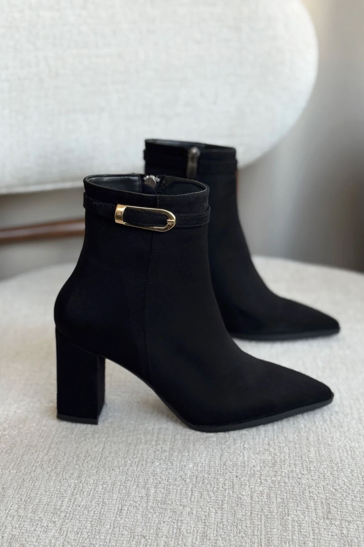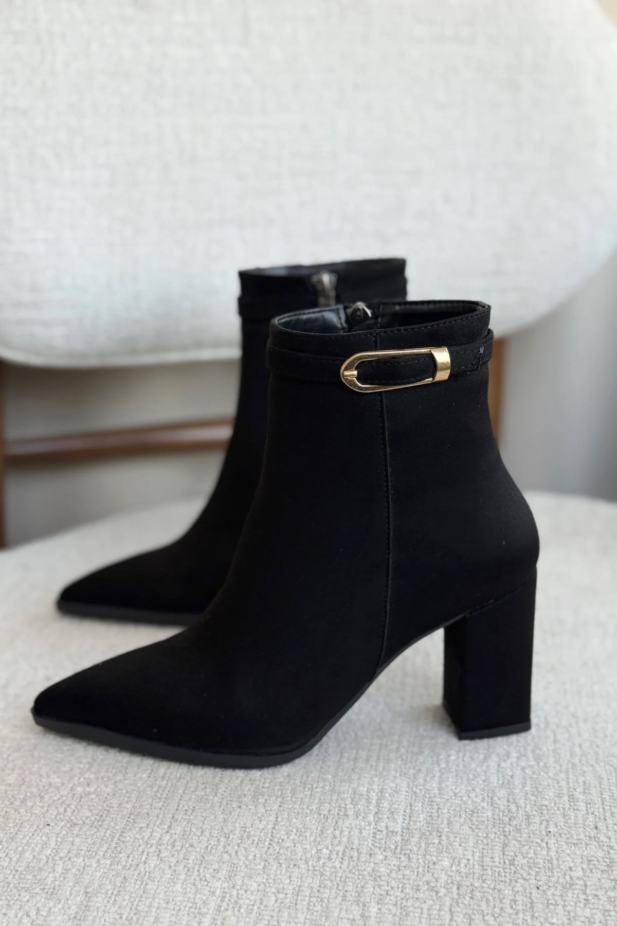 Kadın London Kalın Topuklu Tokalı Bot - Siyah Süet